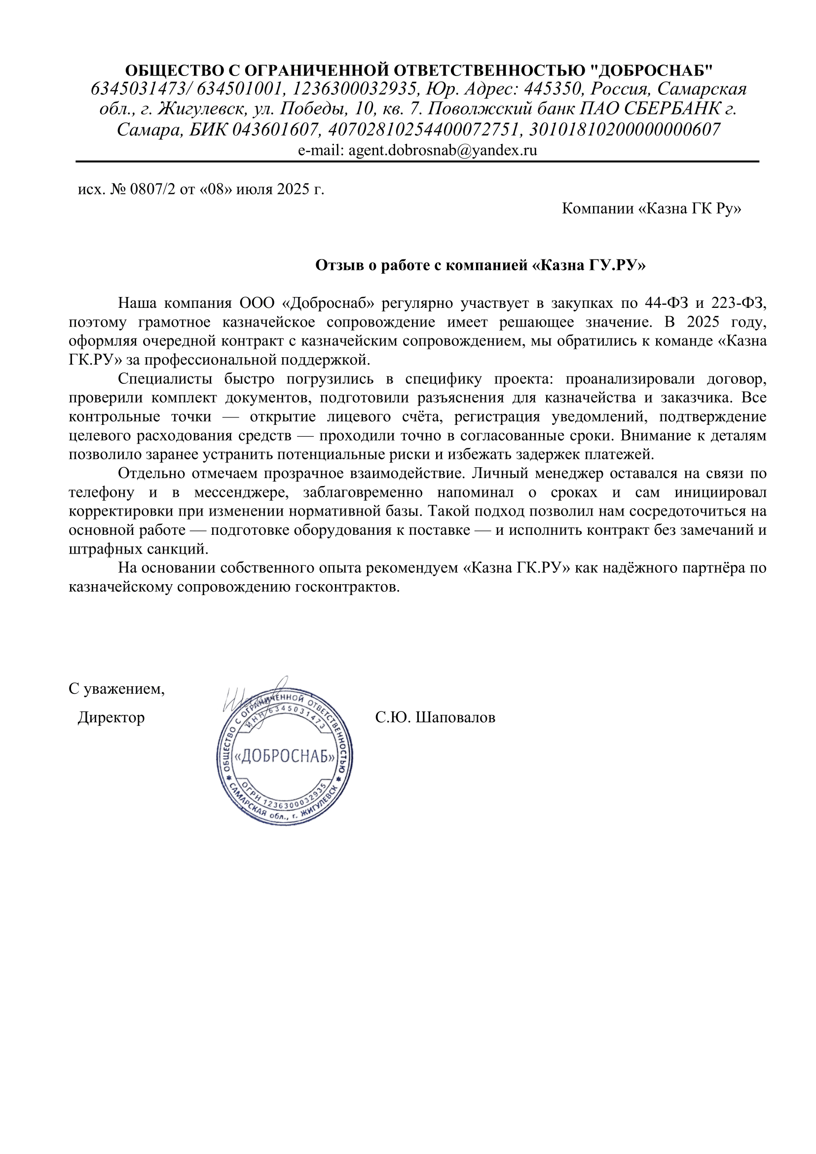 Обращались в компанию «Казна ГК» за сопровождением госконтракта с казначейским сопровождением. Работа выполнена…