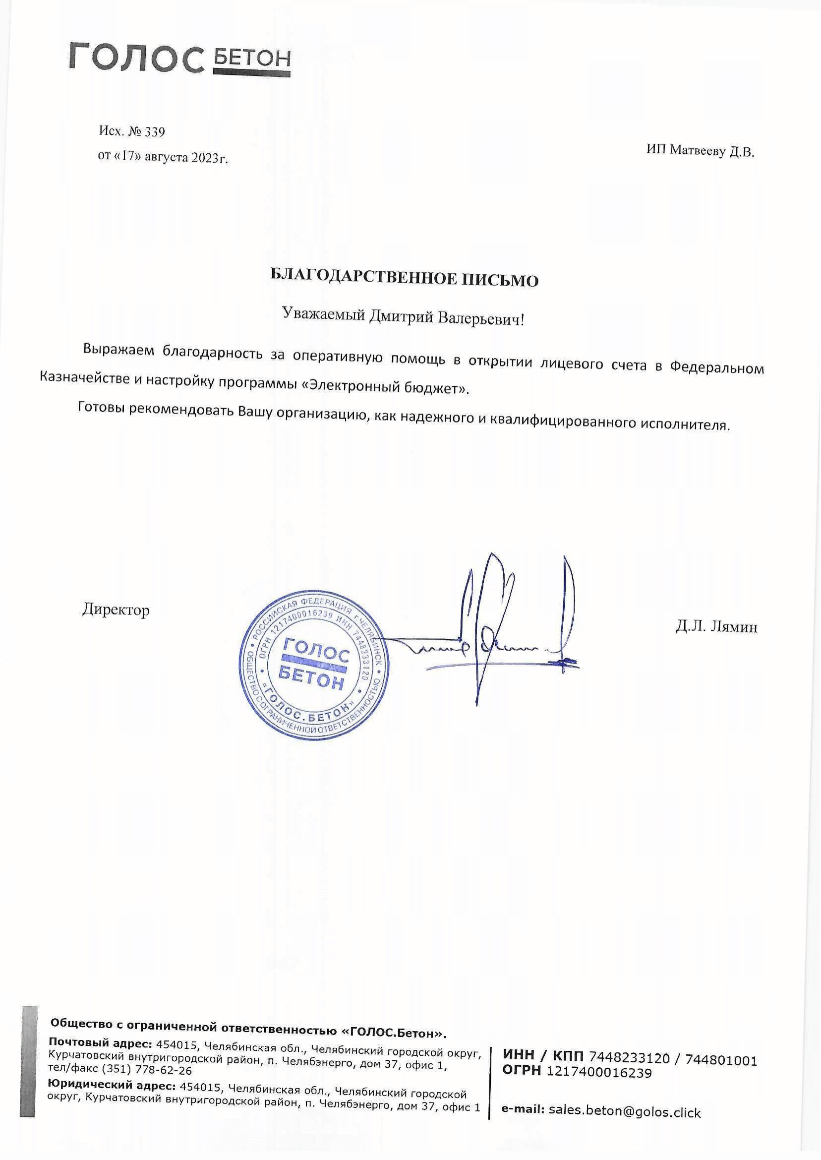 Выражаем благодарность за оперативную помощь в открытии лицевого счета в Федеральном Казначействе и настройку...
